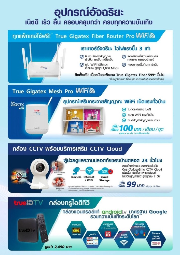 ลูกค้าสามารถเลือกบริการเน็ตบ้านทรู, ไวไฟทรู, โปรเน็ตพิเศษ และติดตั้งเน็ตบ้านทรู True Internet Fiber (WiFi) TrueOnline (ทรูออนไลน์) ได้ครบวงจร ไม่ต้องเสียเวลาเดินทางไปที่ช้อปเพื่อขอติดตั้งเน็ต WiFi สอบถามเราได้เลยที่นี่